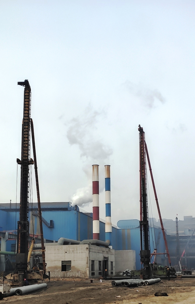 山西通才工贸有限公司60万吨棒材线项目感应加热设备电气室架柱施工现场